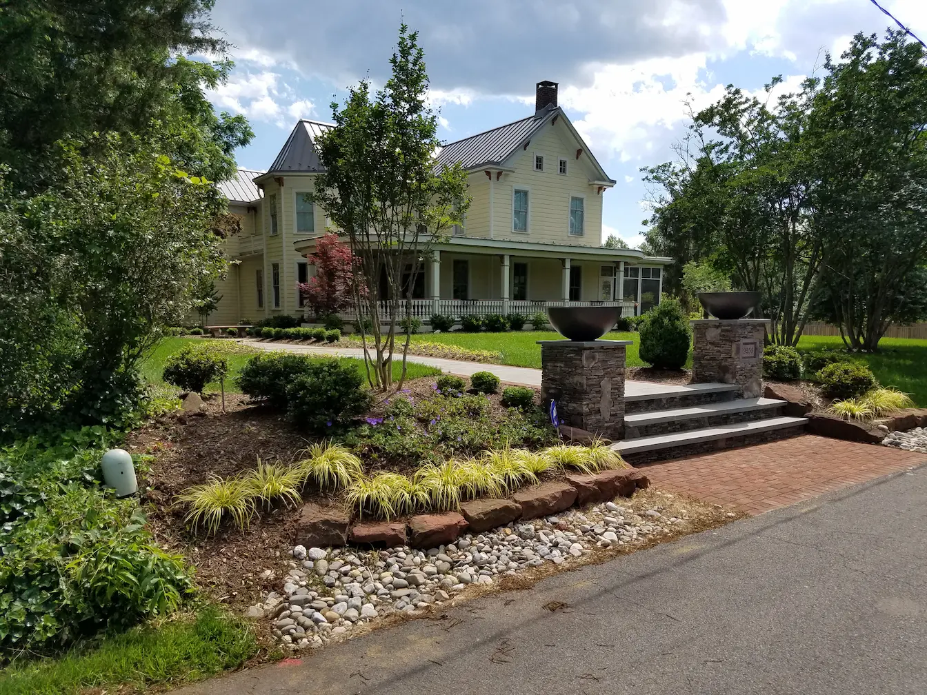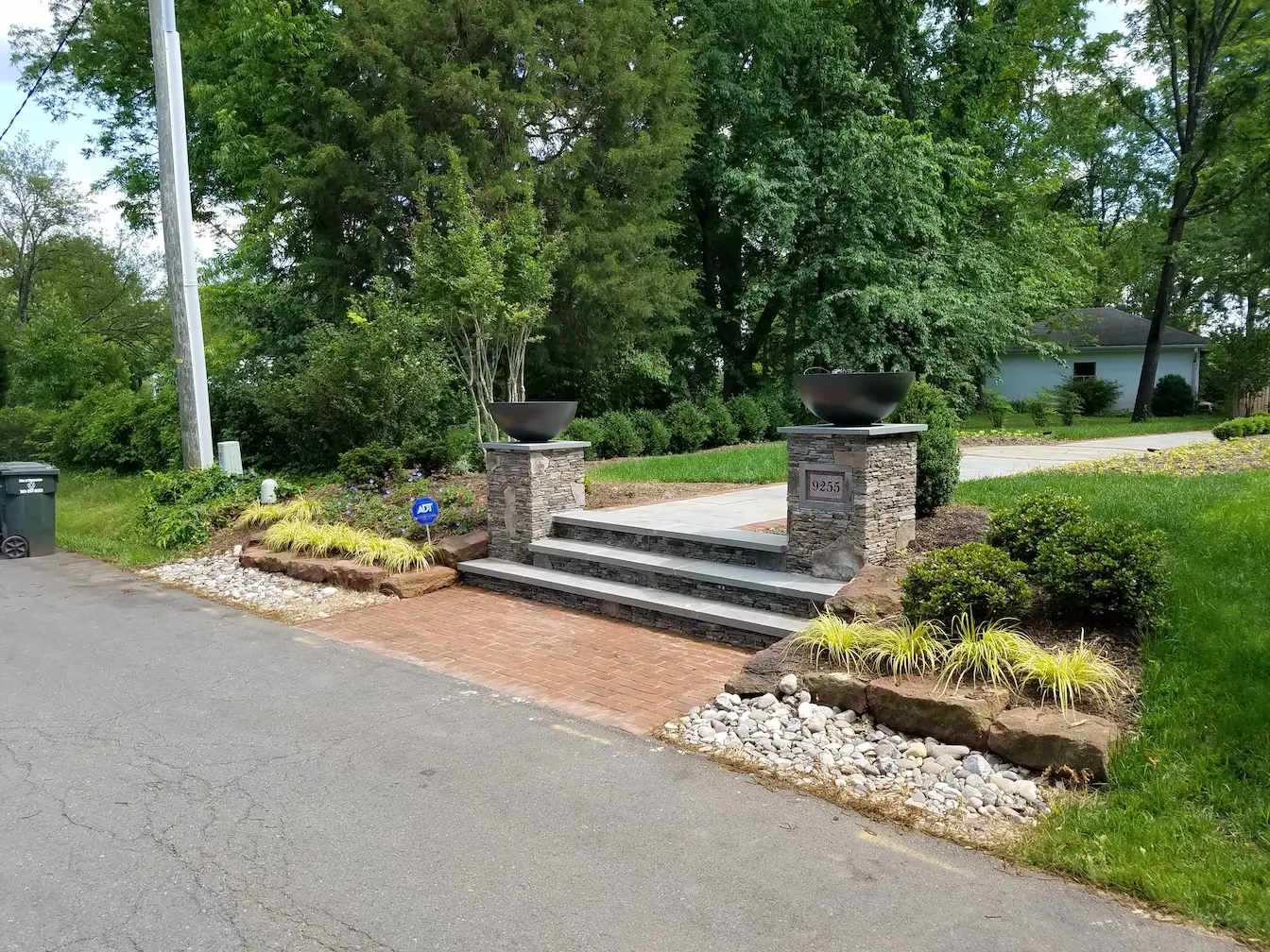 The design centered around a resort-style pool and spa, framed by structured stonework, brick paving, and a pavilion that anchors the landscape. Formal entry elements, layered planting beds, and custom hardscaping create a sense of arrival and continuity throughout the property. Every feature was positioned to enhance sightlines and movement.