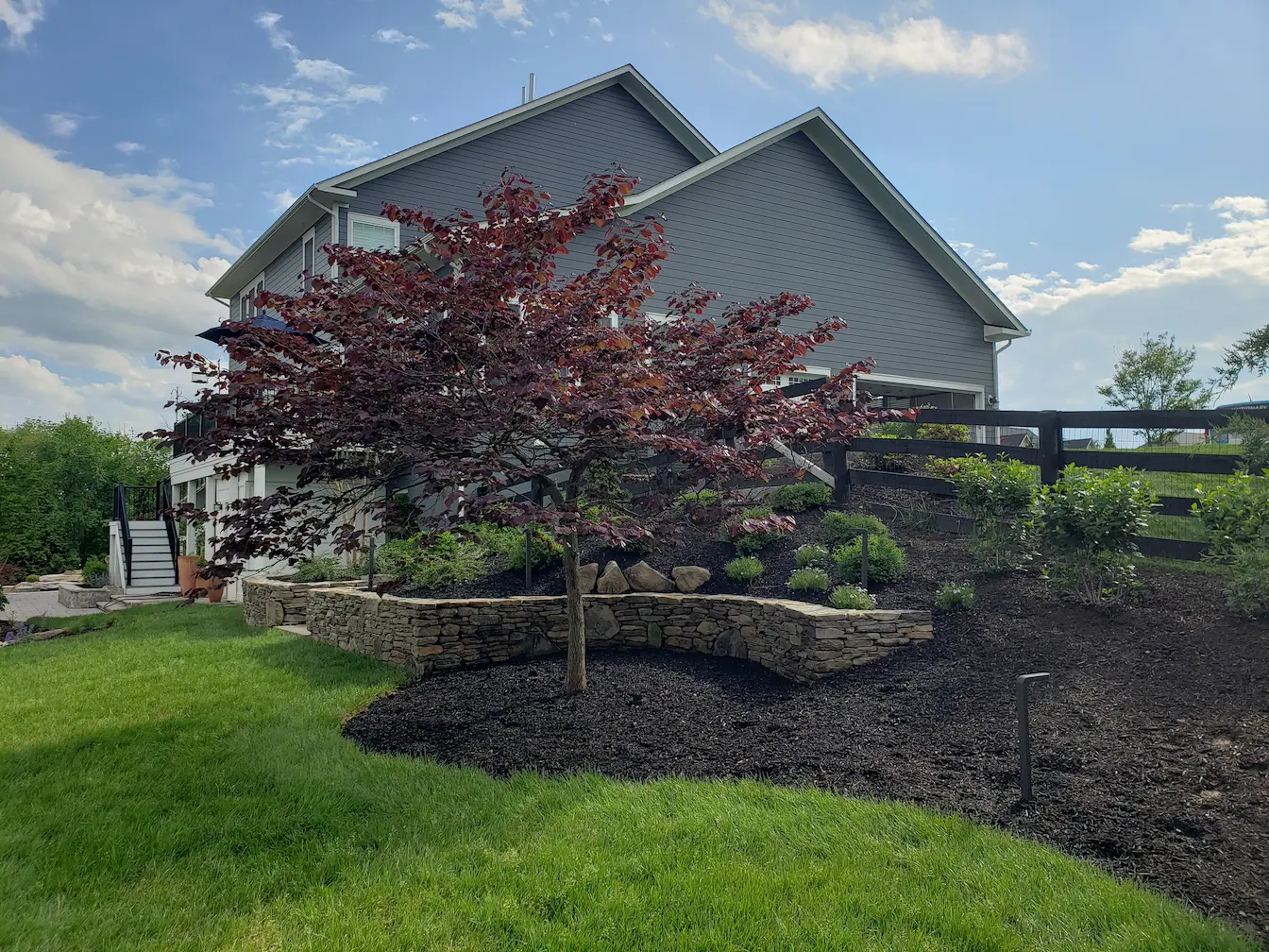 We introduced layered stone retaining walls, sculpted planting beds, and focal elements like water features and specimen trees to create cohesion. Curving lines and natural materials were used to soften transitions and guide movement throughout the property.