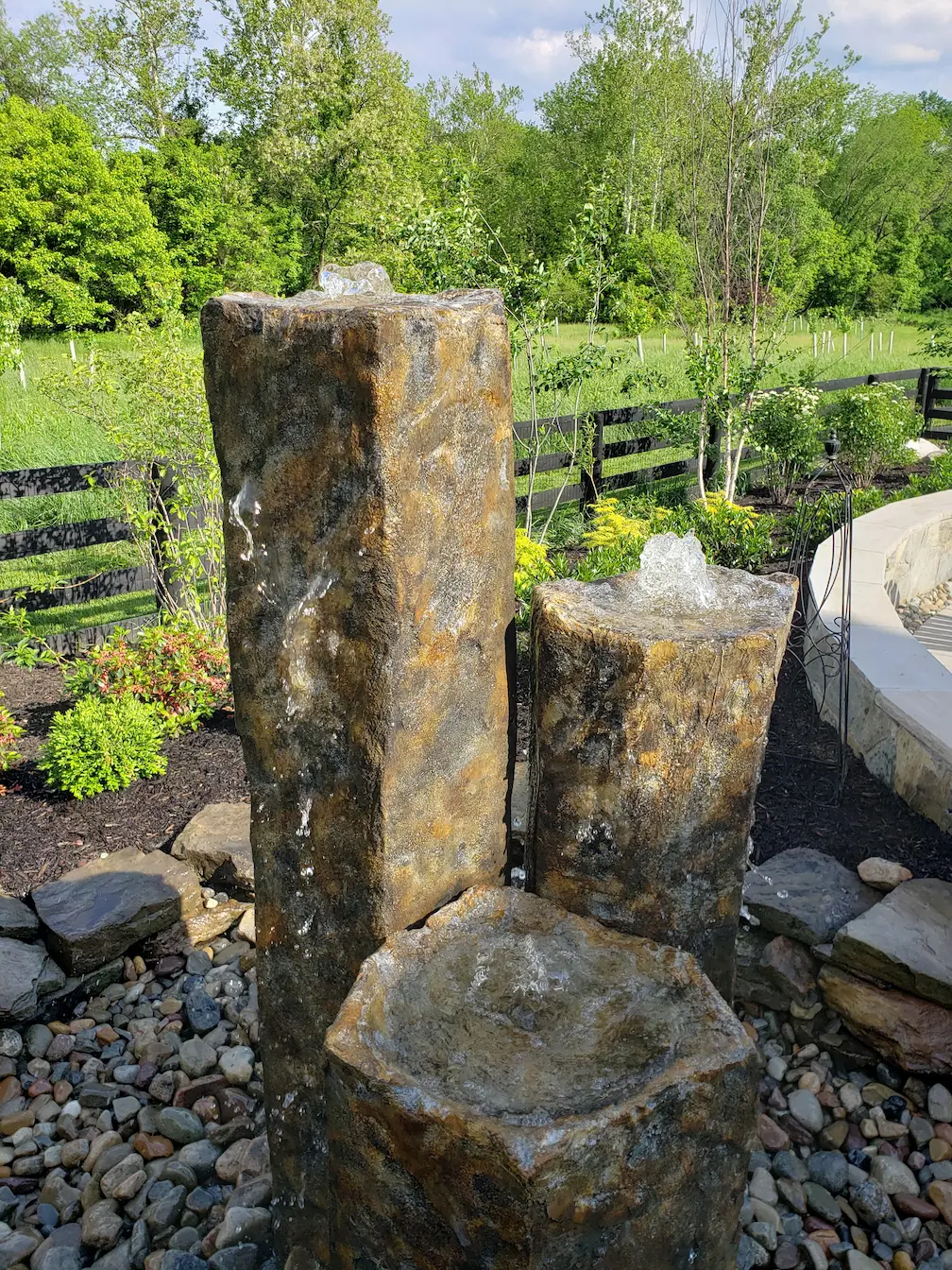 The finished landscape offers a calm, immersive experience with meandering paths, tranquil water sounds, and thoughtfully framed views. Each space feels intentional, inviting homeowners and guests to slow down and explore.